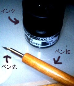 ペン先ってところをね、インクにつけてね、それで描いてくのね。
